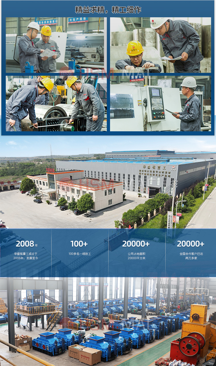 4.華盛銘高鉻錳鋼耐磨材質含有稀有金屬輥皮材質,耐磨耐用耐高溫,出料粒度1-3mm可隨意調節。
